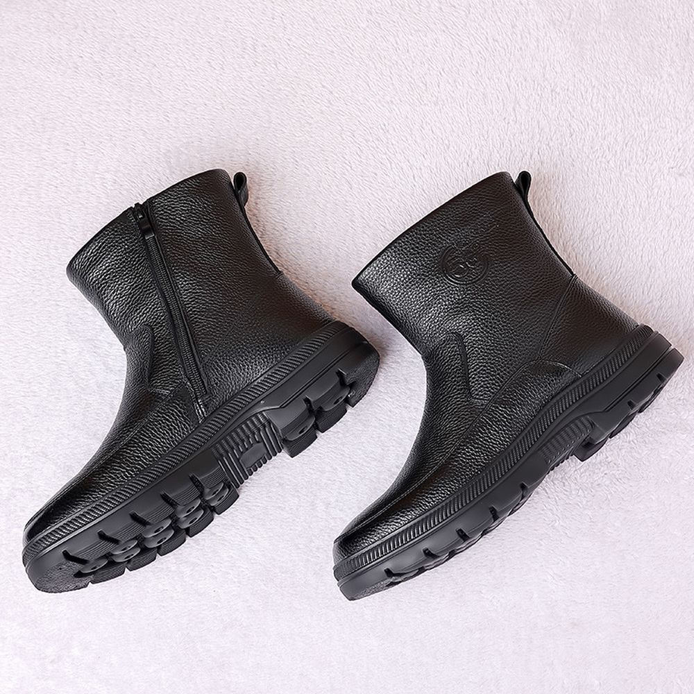 Men's Cotton Shoes Cowhide High-Top Snow Boots Plus Fleece Warm Boots