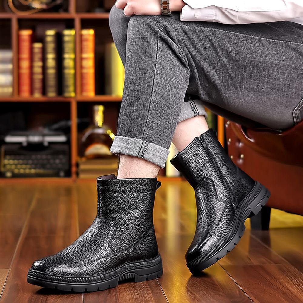 Men's Autumn and Winter New High-Top Cotton Shoes Leather Casual Short Martin Boots